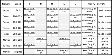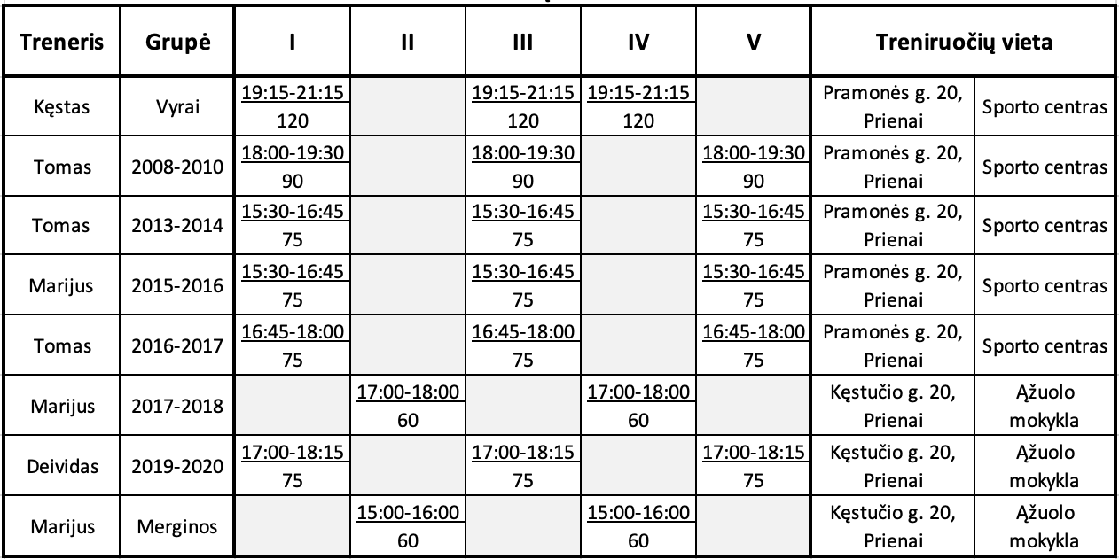 Nemuno futbolo centro treniruočių tvarkaraštis 2025.09.01 - 2025.10.30